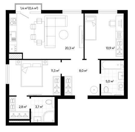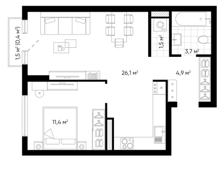 Площадь от 31.4 м2