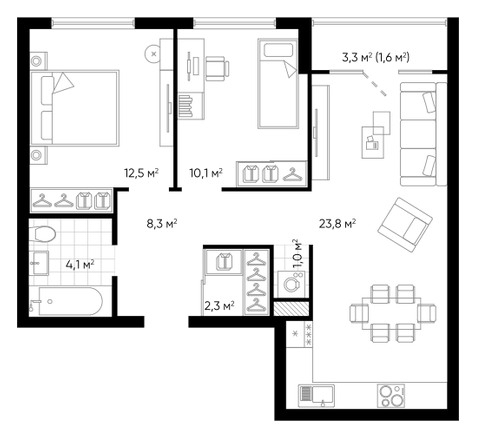 Площадь от 23.12 м2