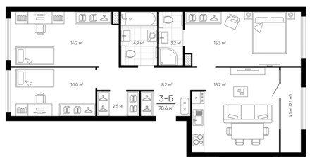 Площадь от 75.15 м2