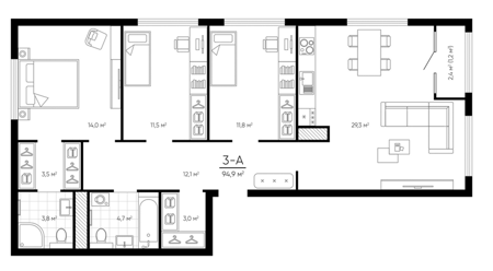 3Е-комнатные