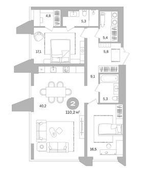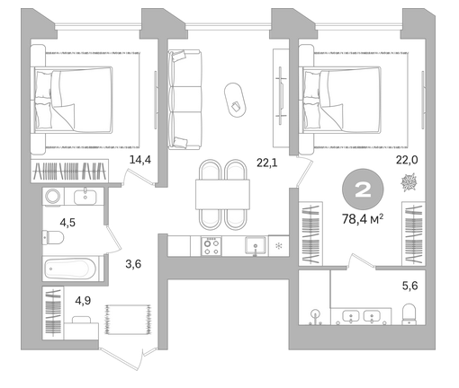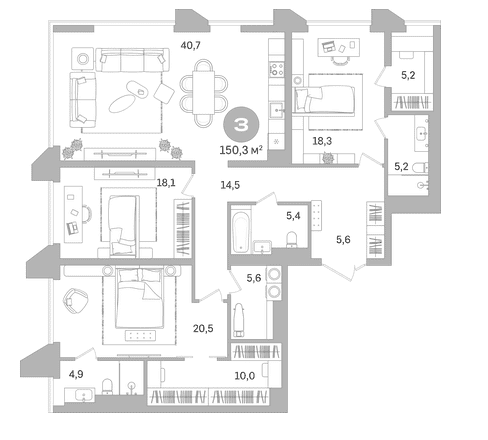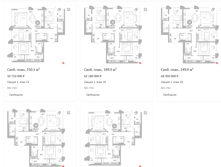Как бы вы ни распланировали квартиру, панорамные окна с низкими подоконниками впустят в неё максимум света. Мокрые зоны и служебные помещения спроектированы ближе ко входу, чтобы оставить больше солнца спальням и гостиным. На верхних этажах — пентхаусы площадью более 600 м² с мастер-спальнями, террасами и видами на 360 градусов.Высота потолков: на типовых этажах — 3 метра, в пентхаусах — 3.3 метра
